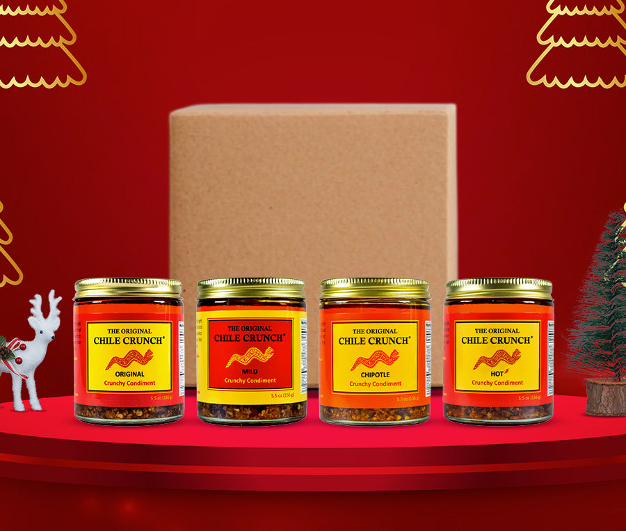 Imagine my ORIGINAL CHILE CRUNCH® but with a bold, unique, and distinctively pungent smoky flavor. CHILE CRUNCH® CHIPOTLE blends this smoky flavor with the same unique crunchiness as my existing line. Same basic texture with a medium heat level. The chipotle chiles used in my formulation are a smoked, dry jalapeño chile.